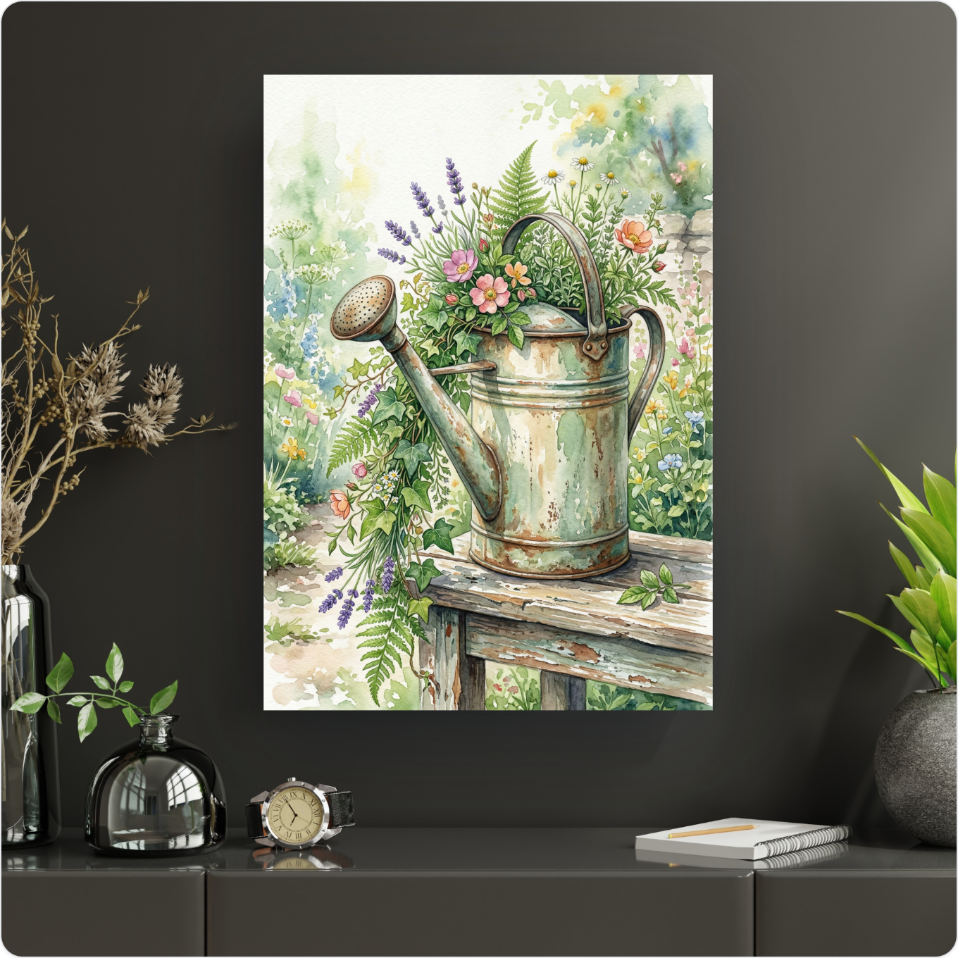 Affiche Arrosoir Vintage Fleuri en Aquarelle