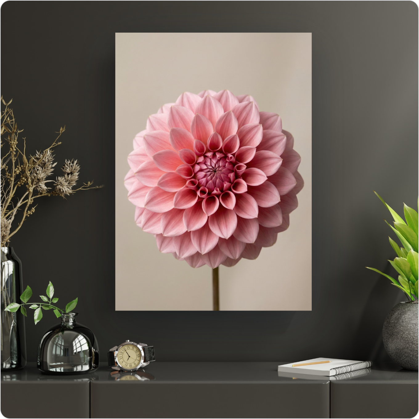 Description L'Éclat du Dahlia Rose : Une Invitation à la Sérénité Murale