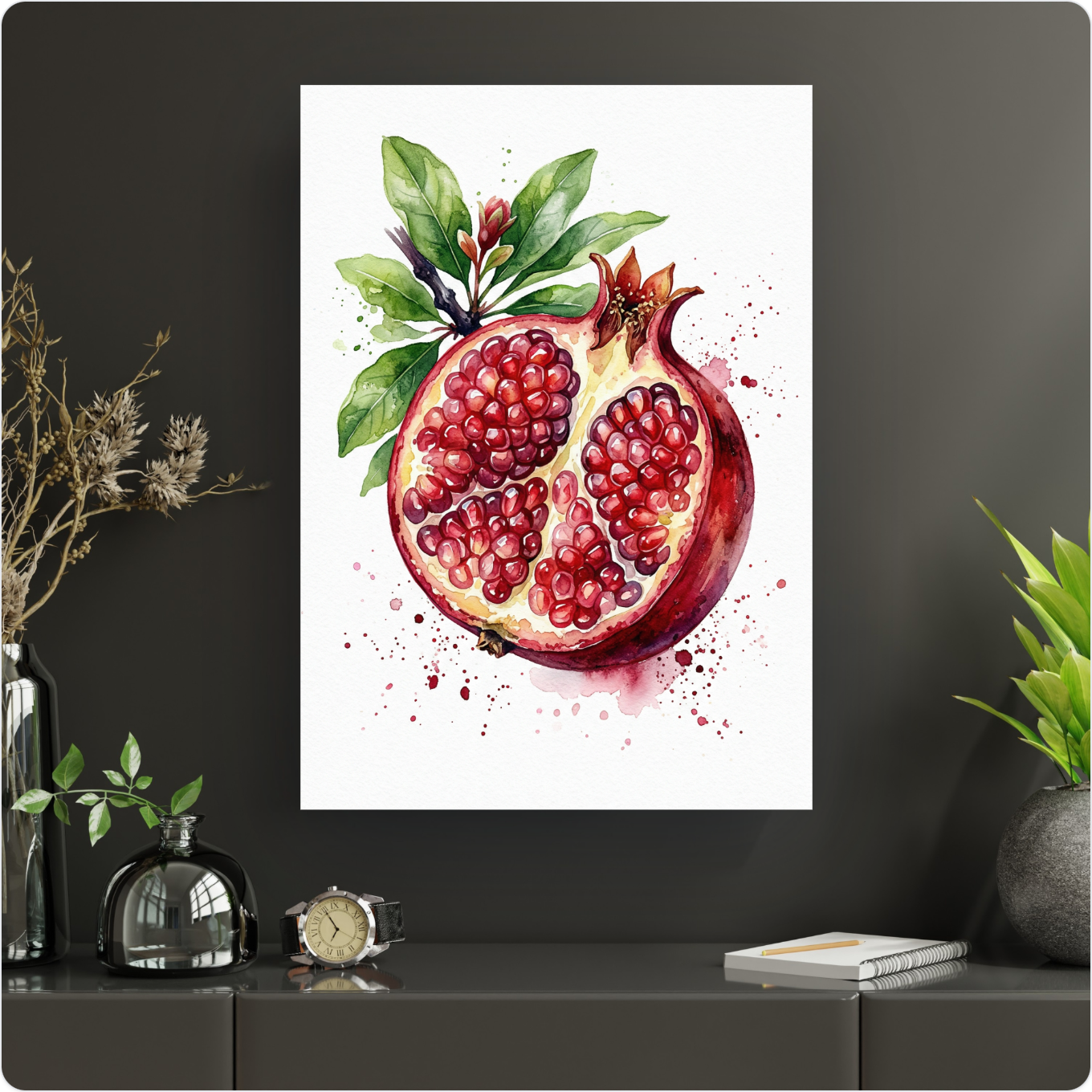 Si vous cherchez un cadeau decoratif, Affiche Grenade Aquarelle Éclatante - Décoration Murale Fruitée fonctionne tres bien seul ou en duo avec d autres affiches du meme univers pour composer un mur galerie harmonieux.