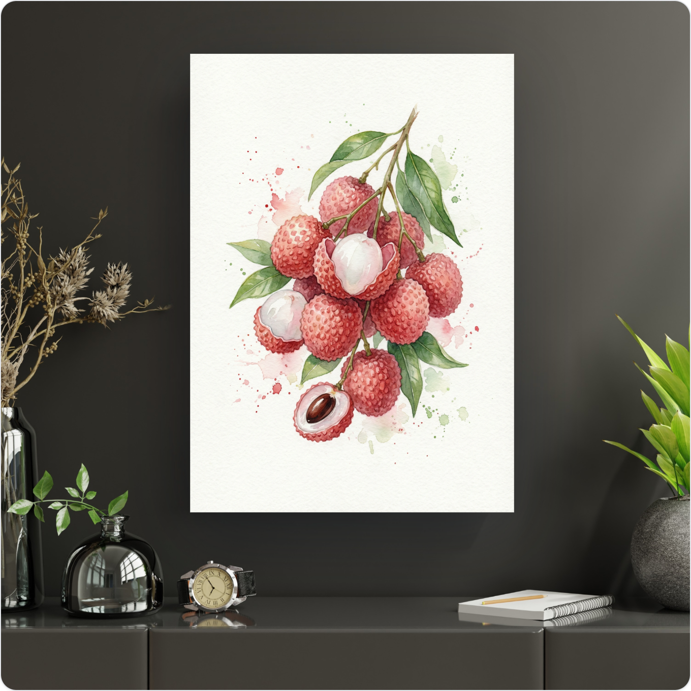 Description Éclat Exotique : L'Affiche Lychees en Aquarelle pour Votre Intérieur